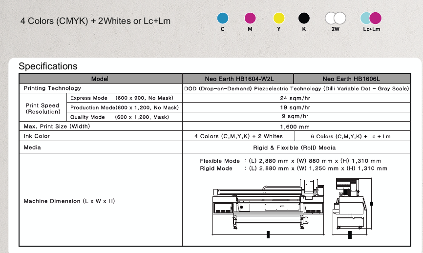 Υβριδικό Σύστημα Εκτύπωσης (Hybrid Printing System – HB): Εκτύπωση σε ρολά έως 1600 mm αλλά και σε επίπεδα υλικά, για ευελιξία σε διάφορους τύπους εργασιών.